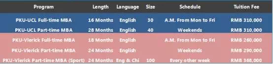 方向:全日制国际MBA\卓越制造MBA、金融MBA、创新创业MBA、综合MBA
